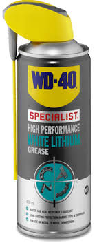 White lithium grease is a lubricant that typically comes in an aerosol form.