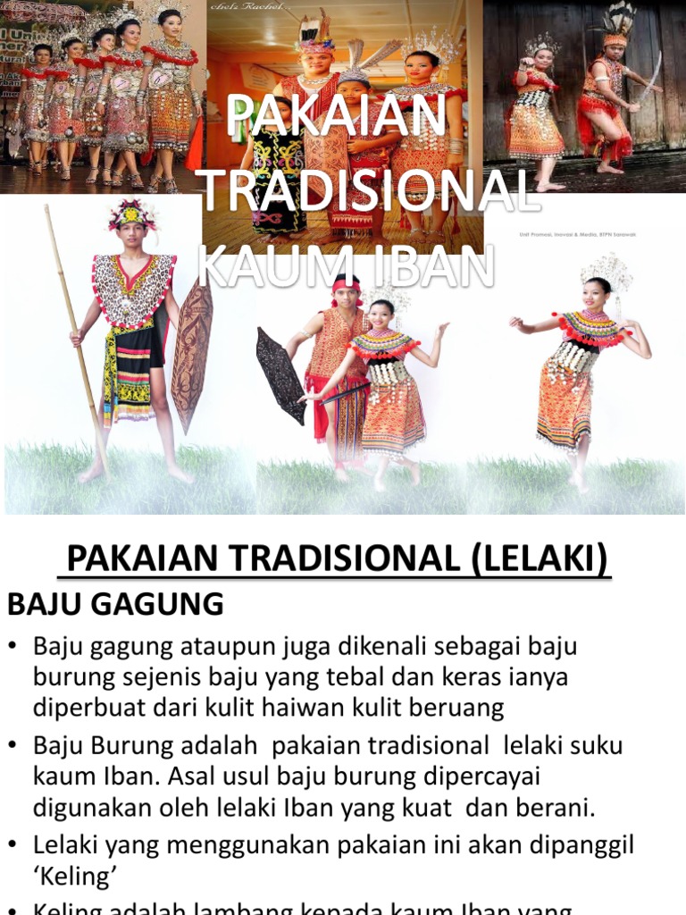 Pakaian Tradisional Iban Lelaki / Sarawak Pakaian Tradisional Kaum Kaum Di Malaysia / Di sini diketengahkan pakaian tradisional etnik utama di sarawak.. Kalambi dipakai oleh lelaki dan wanita iban ketika upacara tertentu sahaja. Sirat dan kelambi kain kebat marik empang. Sirat dipakai dengan cara melilitnya dipinggang dan celah kelengkang. Pakaian tradisional lelaki iban pakaian tradisional lelaki iban terbahagi kepada dua iaitu kain sirat dan dandong. Pakaian tradisional perempuan iban bidang wanita iban memakai kain sarung yang dipanggil bidang.